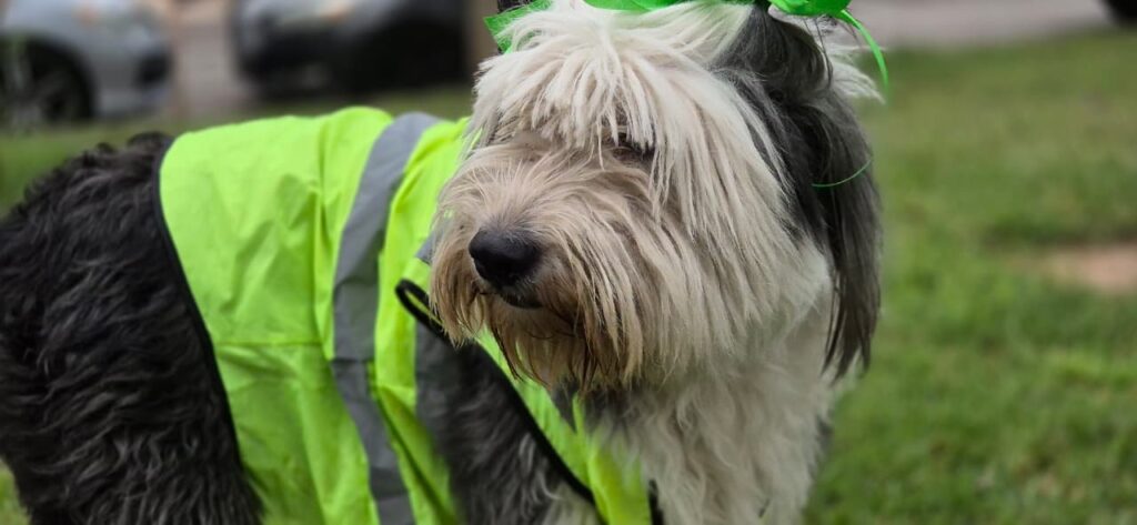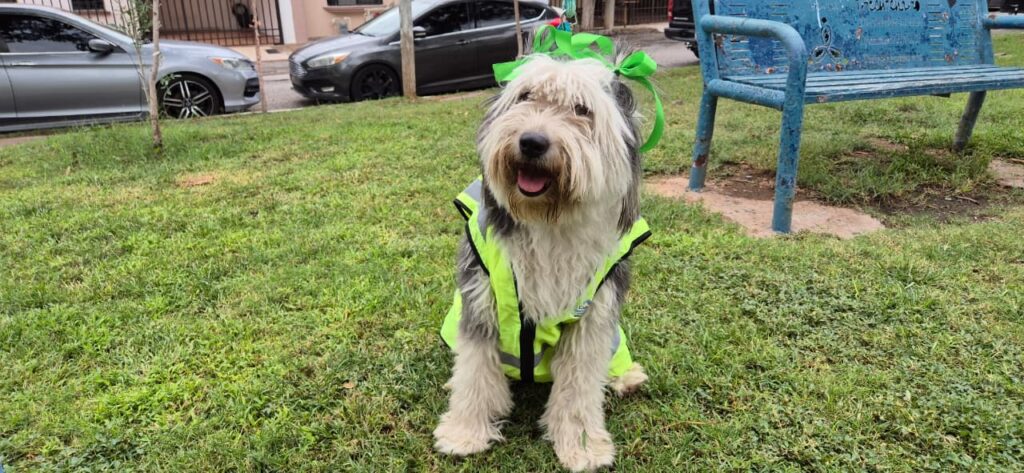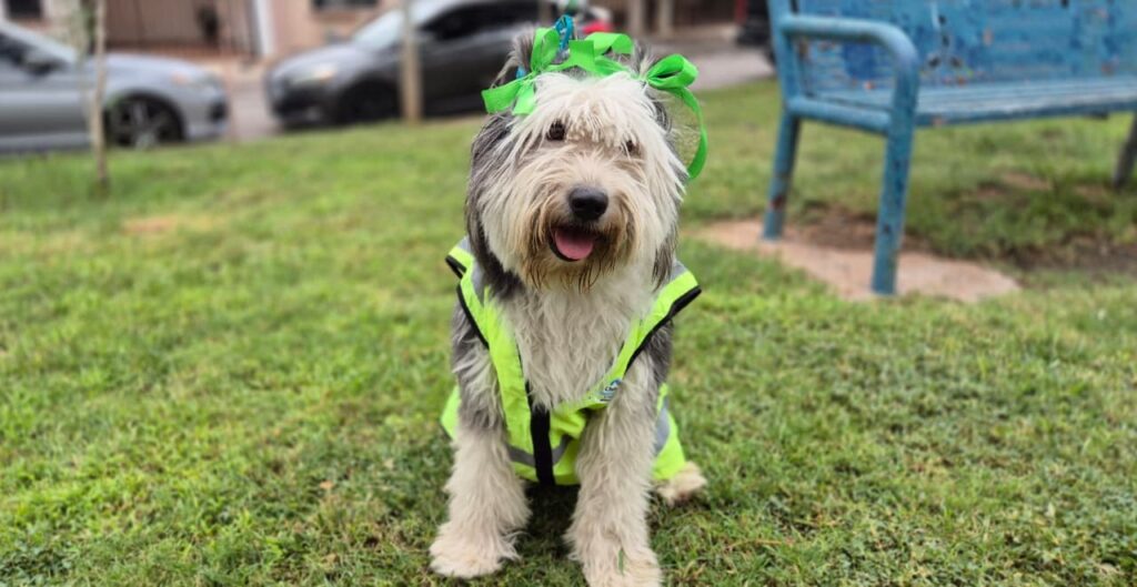 H. Ciudad de Chihuahua, Chih., a 12 de octubre de 2025.- Bartola, es una perrita pastor inglés de tres años de edad, quien trabaja diariamente supervisando la limpieza de los parques de Chihuahua Capital, junto a los colaboradores de la Dirección de Mantenimiento Urbano del Gobierno Municipal.