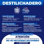 El Gobierno Municipal, a través de la Dirección de Servicios Públicos Municipales, informa a la ciudadanía el calendario que el programa Destilichadero realizará del 30 de mayo al 3 de junio, donde visitará siete colonias de la ciudad, de 9 de la mañana a 3 de la tarde.