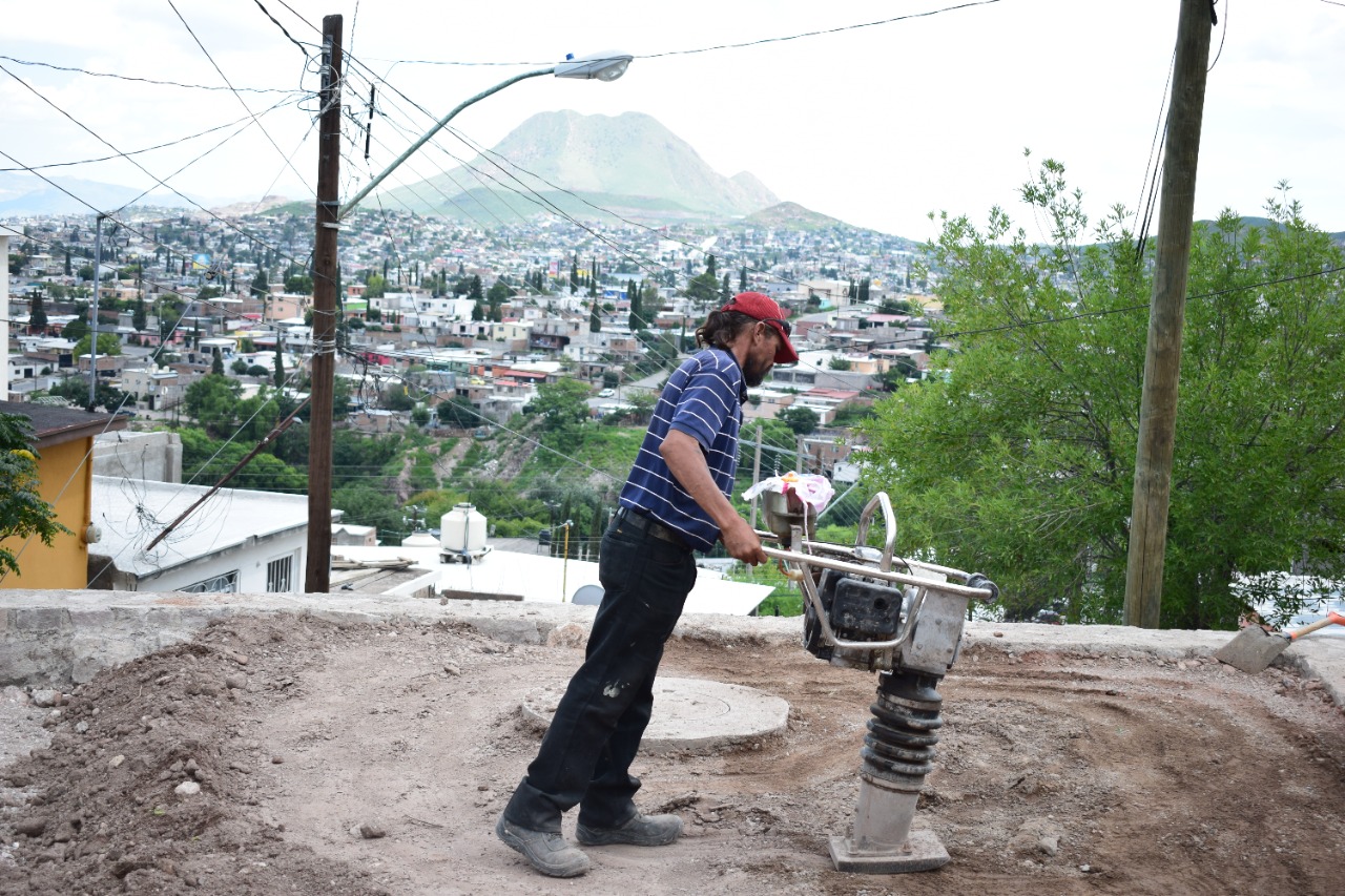 Por otra parte, en el muro que se construye, en la calle 16 de Julio y Río Chuviscar, se está laborando en la compactación del terreno para después colocar la cubierta de concreto, aparatos para hacer ejercicio, bancas y botes de basura.