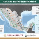 La masa de aire frío asociada al frente ocasionará evento de “Norte” con rachas de 70 a 80 km/h en las costas de Tamaulipas y Veracruz, y rachas de 50 a 60 km/h en el litoral de Tabasco, además de oleaje elevado de 1 a 3 metros de altura significante en las costas de dichos estados.