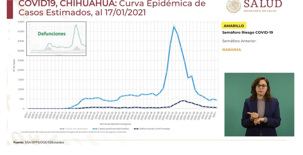 El subsecretario de Salud del gobierno federal, Hugo López-Gatell, informó que respecto a la curva epidémica por COVID-19 en Chihuahua, ésta continúa en descenso.