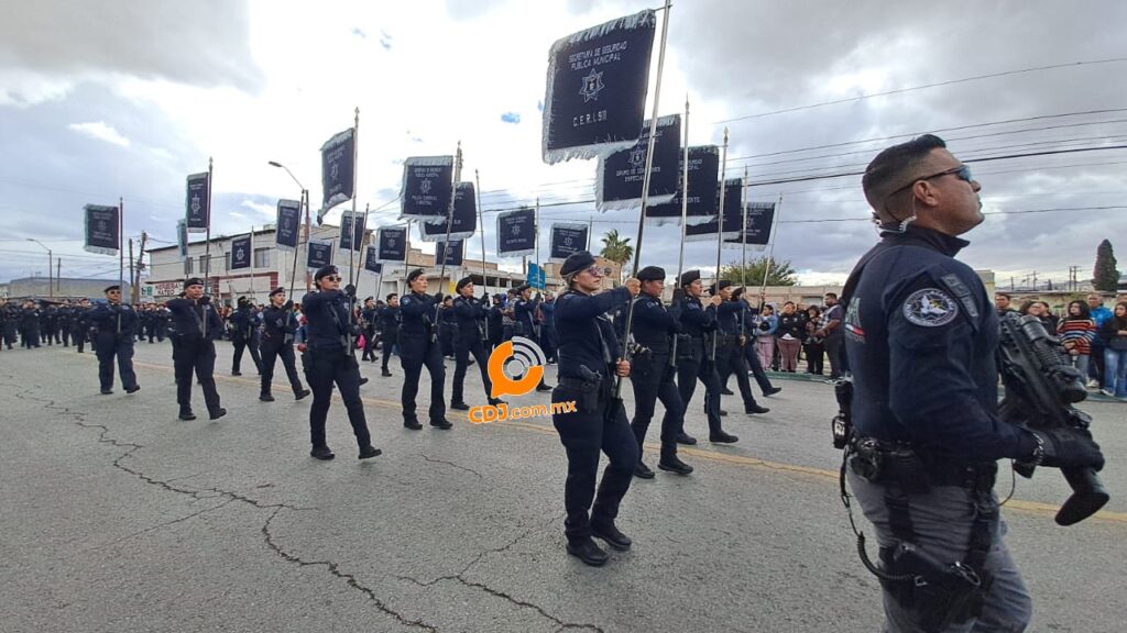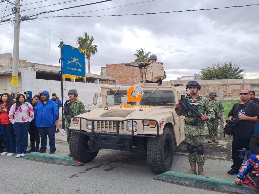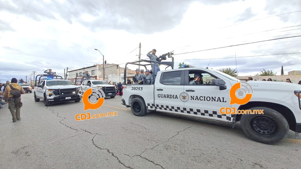 Los niños y jóvenes se mostraron sorprendidos al ver desfilar cada uno de los grupos, entre ellos la Secretaría de Seguridad Pública Municipal, Guardia Nacional, Sedena, Seguridad Vial, entre otras.