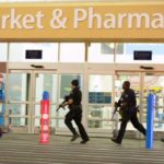 Imágenes de cadenas locales de noticias dan cuenta de decenas de patrullas estacionadas frente a la tienda de autoservicio. Al menos 2 hombres habrían muerto en el lugar.