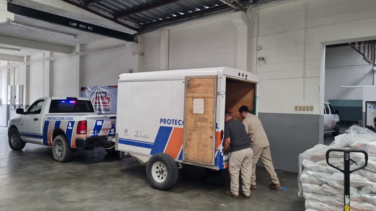 En el caso de Ojinaga, la entrega incluyó 100 colchonetas y 100 cobijas; mientras que para el municipio de Parral, se brindaron 61 láminas, 26 polines, pintura, 46 costales de cemento, y 12 Armex para construcción.