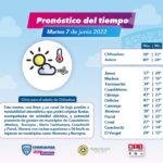 Estas condiciones meteorológicas prevalecerán está semana y el fin de semana, se esperan temperaturas, principalmente en Ojinaga y Juárez, mientras que para el resto de la entidad el termómetro oscilará entre los 35 y los 39°C.