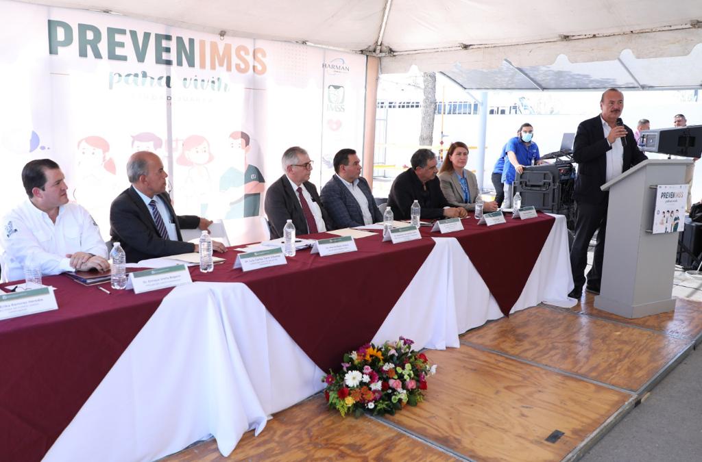 En otro orden de ideas, el secretario general del Seguro Social destacó la puesta en marcha de los programas Entornos Laborales Seguros y Saludables (ELSSA) y PrevenIMSS+, que son acciones de respuesta a un México posCOVID, además se contará con la realización de 60 mil pruebas piloto de cáncer cervicouterino, en beneficio de las mujeres del estado.