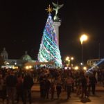 El gobernador de Chihuahua, Javier Corral Jurado, acompñado por su esposa Cinthia Aideé Chavira, encendió el mega árbol de Navidad colocado en la Plaza del Ángel, del centro de la ciudad de Chihuahua.