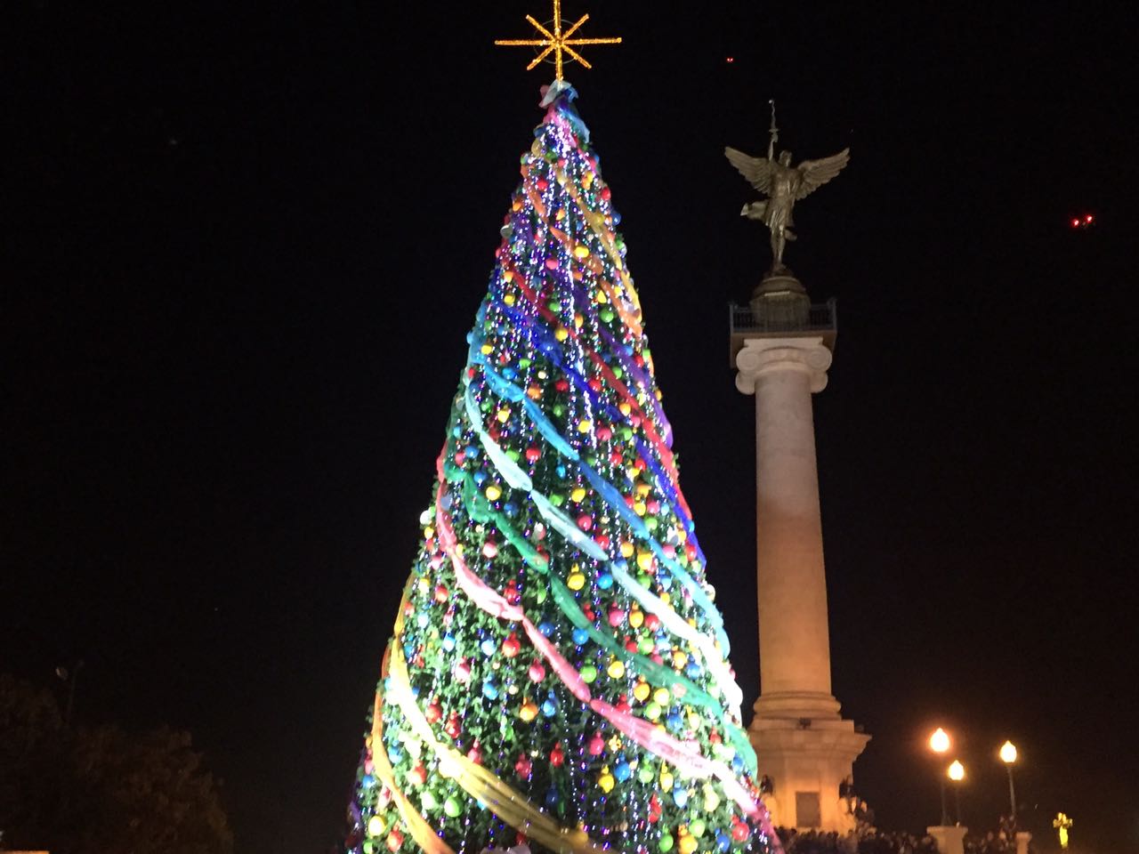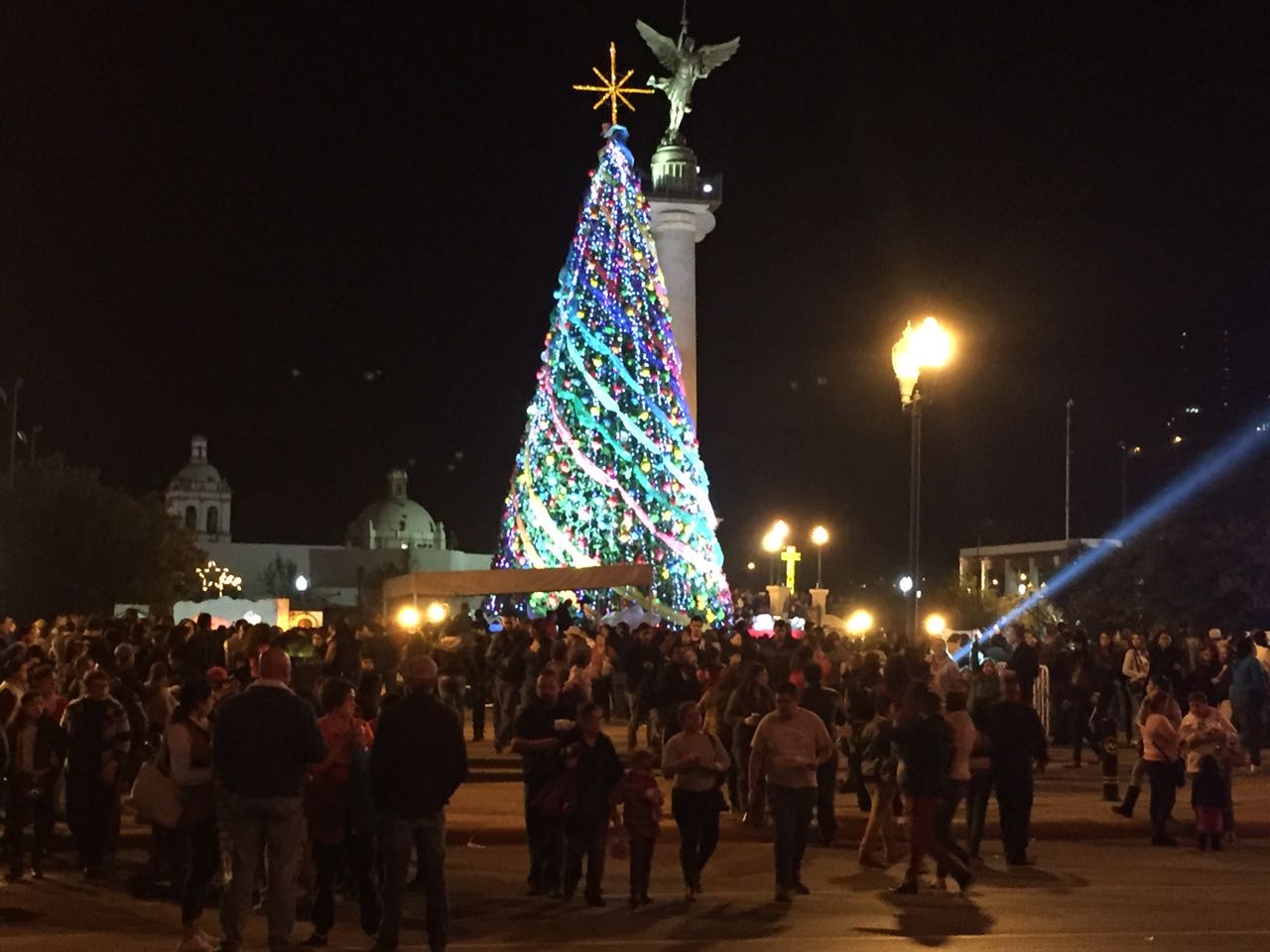 El gobernador de Chihuahua, Javier Corral Jurado, acompñado por su esposa Cinthia Aideé Chavira, encendió el mega árbol de Navidad colocado en la Plaza del Ángel, del centro de la ciudad de Chihuahua.