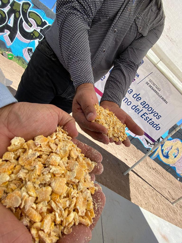 El Gobierno del Estado a través de la Secretaría de Desarrollo Rural inició el proceso de entrega de maíz rolado a productores con actividad ganadera principalmente, distribuyendo en una primera fase 756 toneladas del grano a más de 80 beneficiarios en el municipio de Aldama.