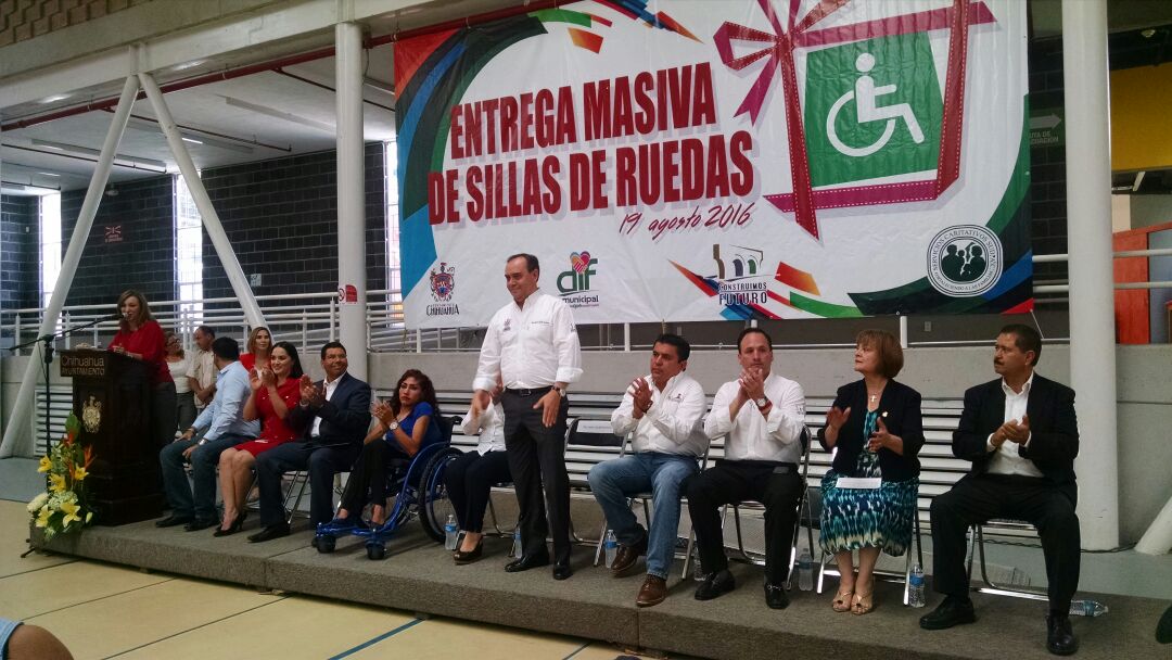 A pocas semanas para que concluya la administración del presidente municipal Javier Garfio, en el gimnasio de Deporte Adaptado fueron entregadas 250 sillas de ruedad por parte del DIF Municipal.