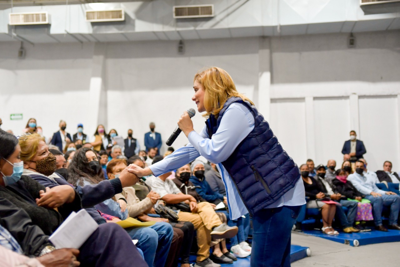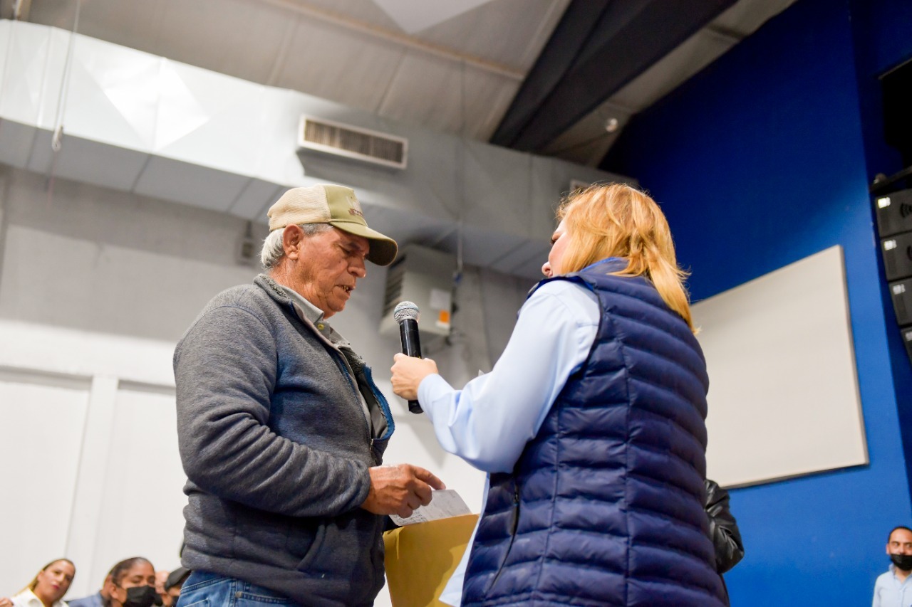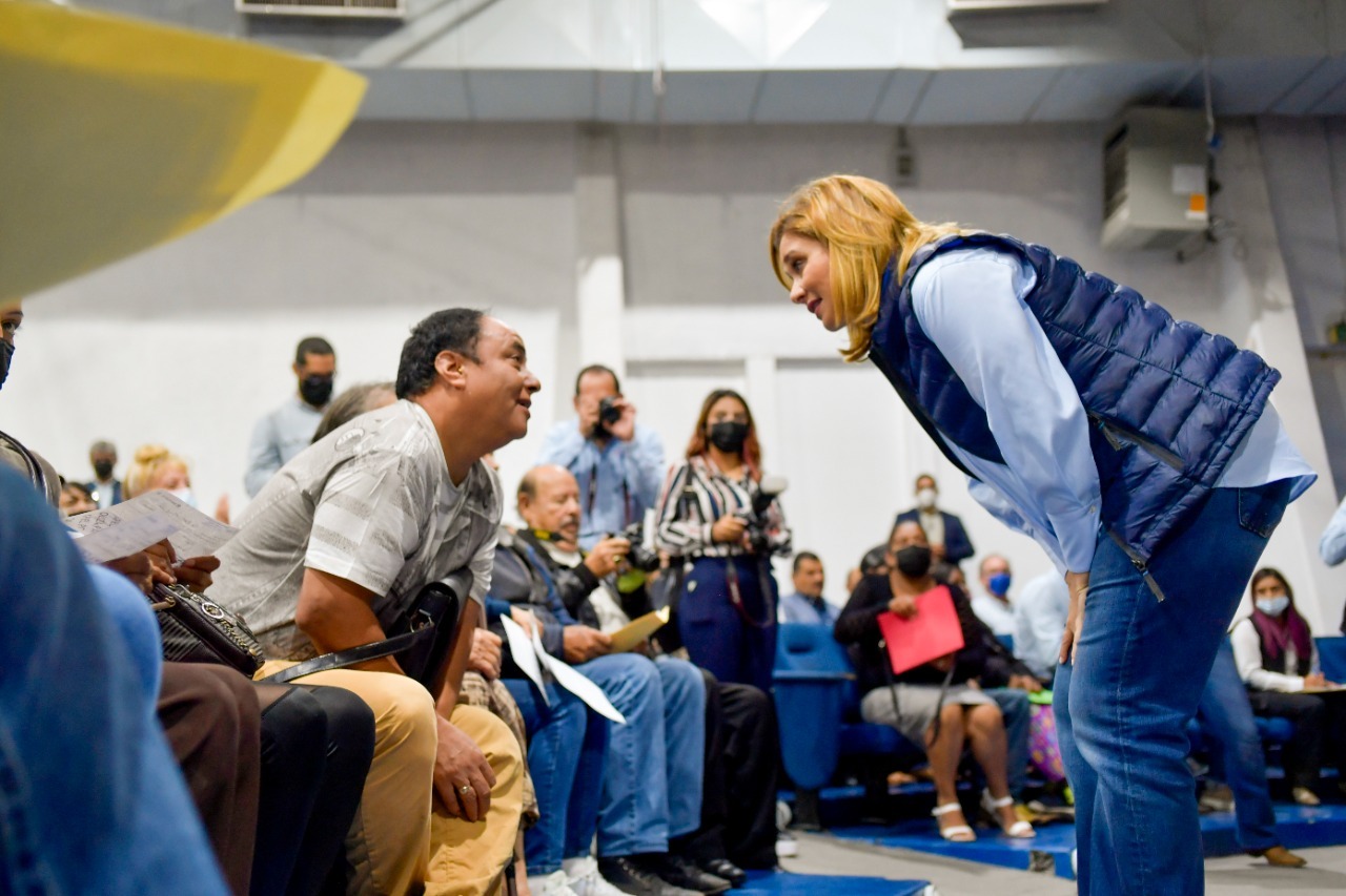 El Teatro de Cámara del Centro Cultural San Antonio fue sede del evento, donde la titular del Ejecutivo entregó apoyos económicos y vales de material de construcción a 268 familias afectadas por las lluvias, con una inversión de 2 millones 423 mil 740 pesos.