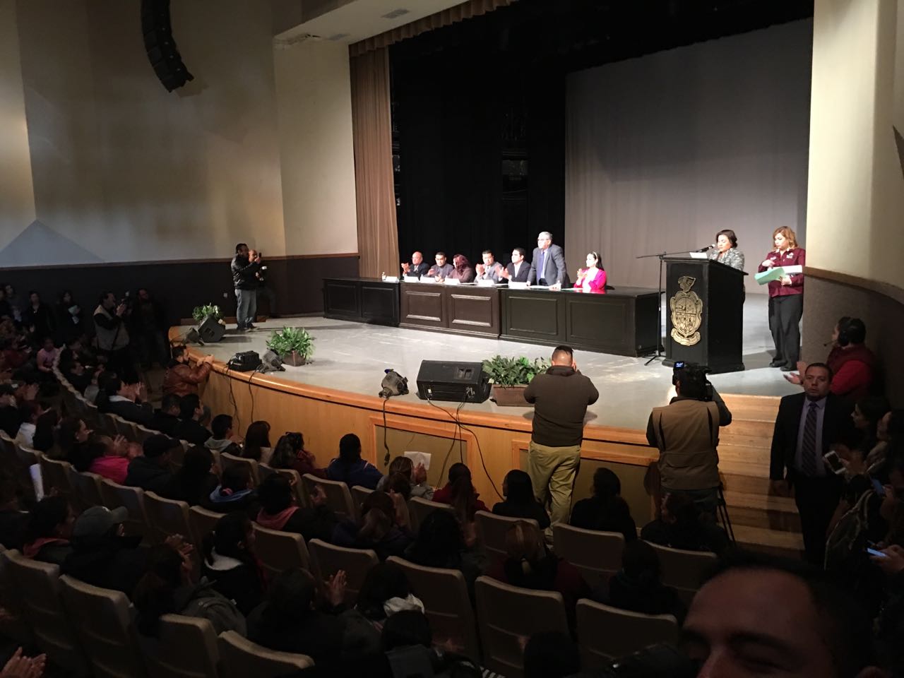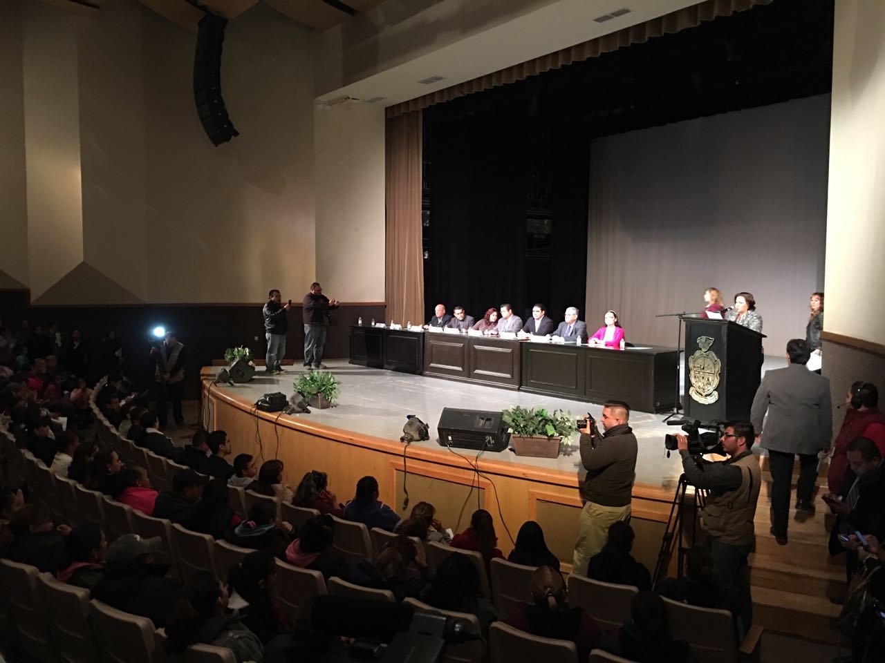 El presidente municipal de Juarez, Armando Cabada Alvidrez, arrancó hoy la entrega de becas del municipio en el auditorio Benito Juárez, frente al Parque Borunda.
