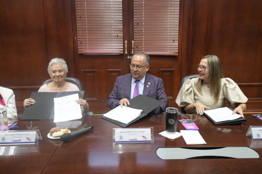 Finalmente, Yolanda Vázquez Franco, representante de la asociación Mujeres por México en Chihuahua, agradeció el compromiso por parte de la Máxima Casa de Estudios y destacó que esta alianza representa un beneficio para la sociedad en general.