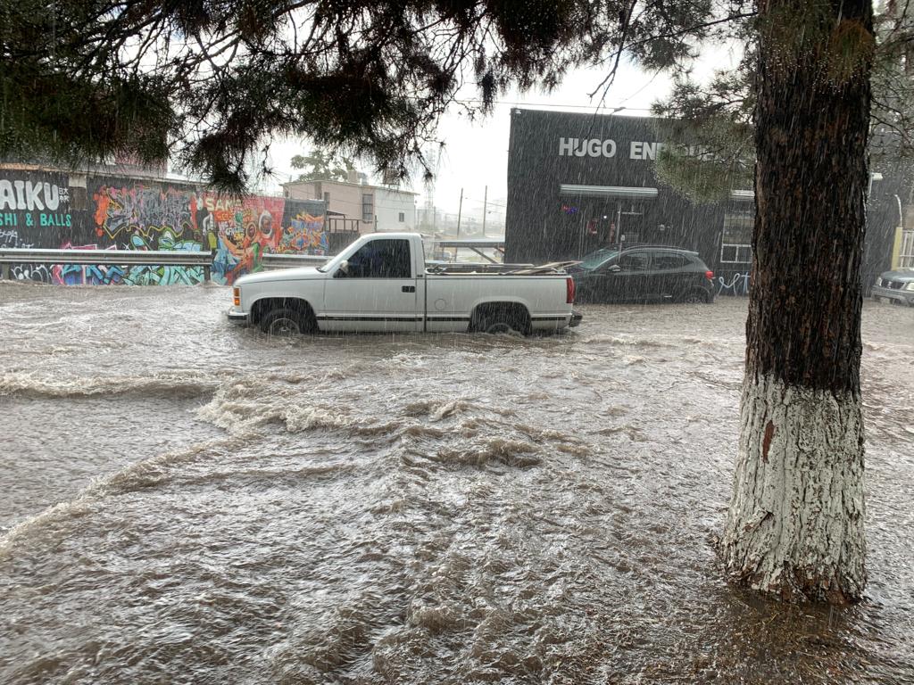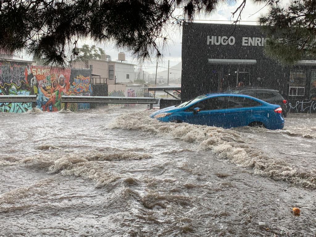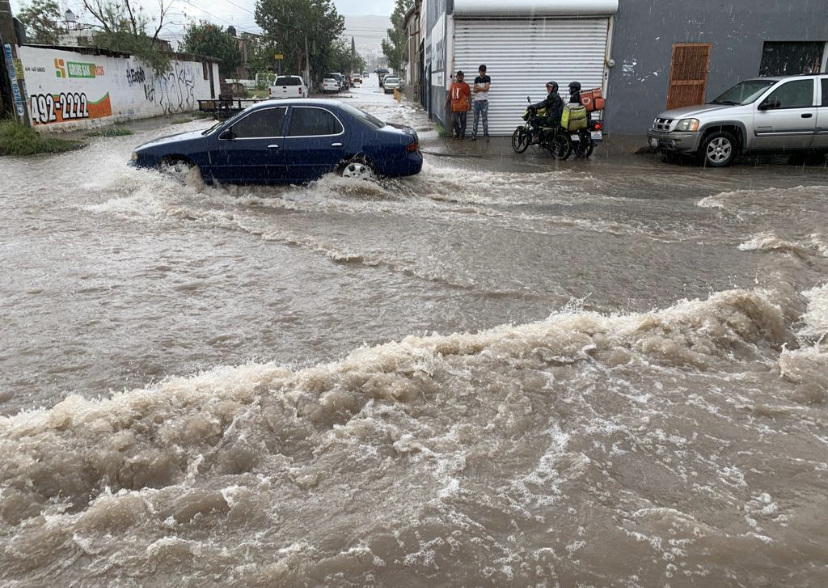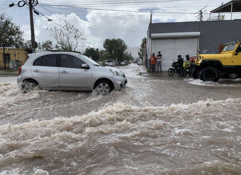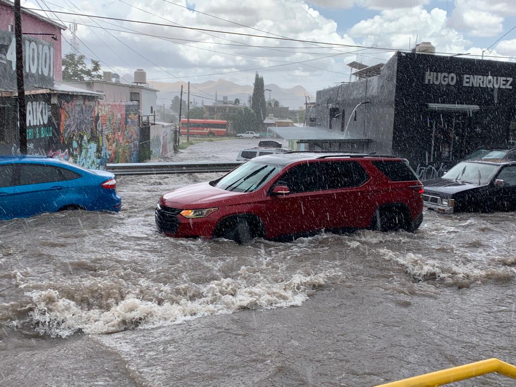 Las lluvias que azotaron en la zona norte de Chihuahua capital, provocaron inundaciones en un sector de la avenida Juan Escutia.