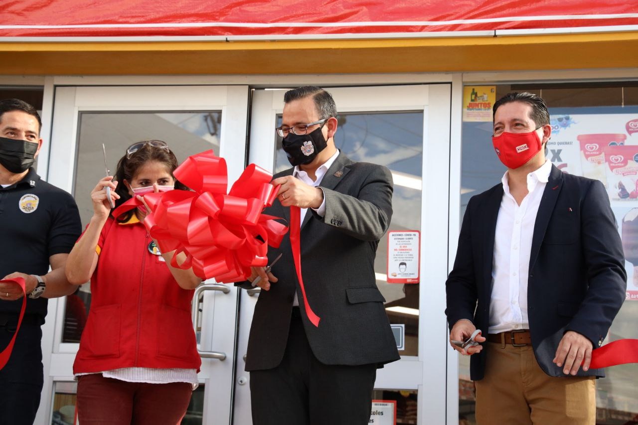 El presidente municipal Marco Antonio Bonilla Mendoza encabezó el corte de liston de la tienda numero 500 de la cadena Oxxo en el fraccionamiento Rincones del Picacho, al norte de la ciudad.