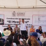 Atendiendo el compromiso por generar más y mejores espacios para promover la práctica del deporte, el Presidente Municipal Armando Cabada Alvídrez, dio el banderazo de arranque de obras para la construcción del gimnasio “El Mezquital”.