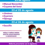 La directora de Prevención y Control de Enfermedades, Leticia Ruiz, indicó que la jornada de comienza el 23 de agosto en el gimnasio municipal de Manuel Benavides y en la Plaza Municipal de Coyame.