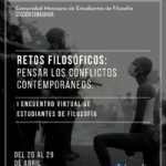 Del 26 al 29 de abril, se llevará a cabo el Primer Encuentro Virtual de Estudiantes de Filosofía con el que se promueven distintos talleres, mesas panel y conferencias magistrales, para reflexionar acerca de los retos filosóficos y conflictos contemporáneos que existen en la actualidad.