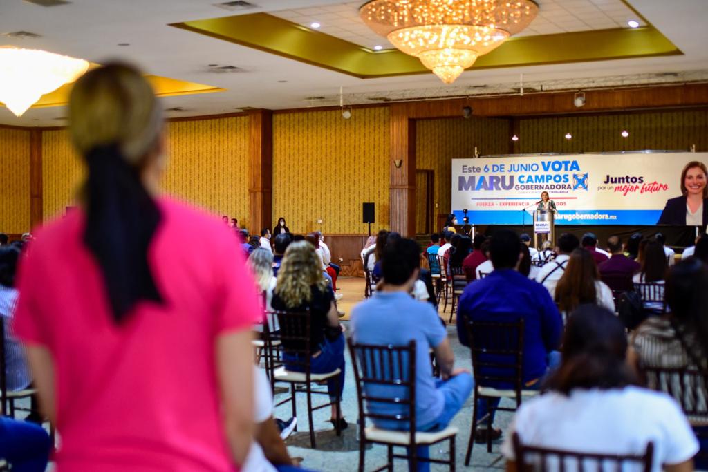La candidata a la gubernatura por la coalición Nos Une Chihuahua, Maru Campos, sostuvo un encuentro con más 350 jóvenes líderes de quince municipios de la región centro – sur del estado, con quienes pudo platicar, así como intercambiar las diferentes propuestas, dudas y problemáticas que el estado enfrenta en la actualidad.