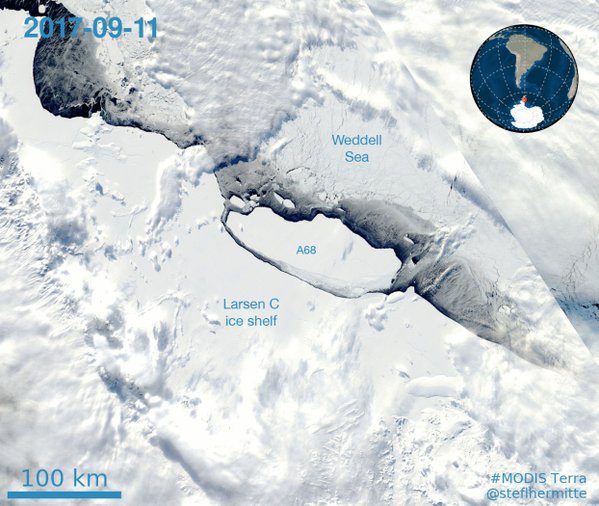 El iceberg, conocido como A-68, se va adentrando en el mar de Weddell, exponiendo así una zona marina de 5 mil 800 kilómetros cuadrados que había permanecido enterrada bajo el hielo en los últimos 120 mil años y estaba unida al océano solo por unas corrientes mínimas, según los científicos del British Antarctic Survey (BAS).