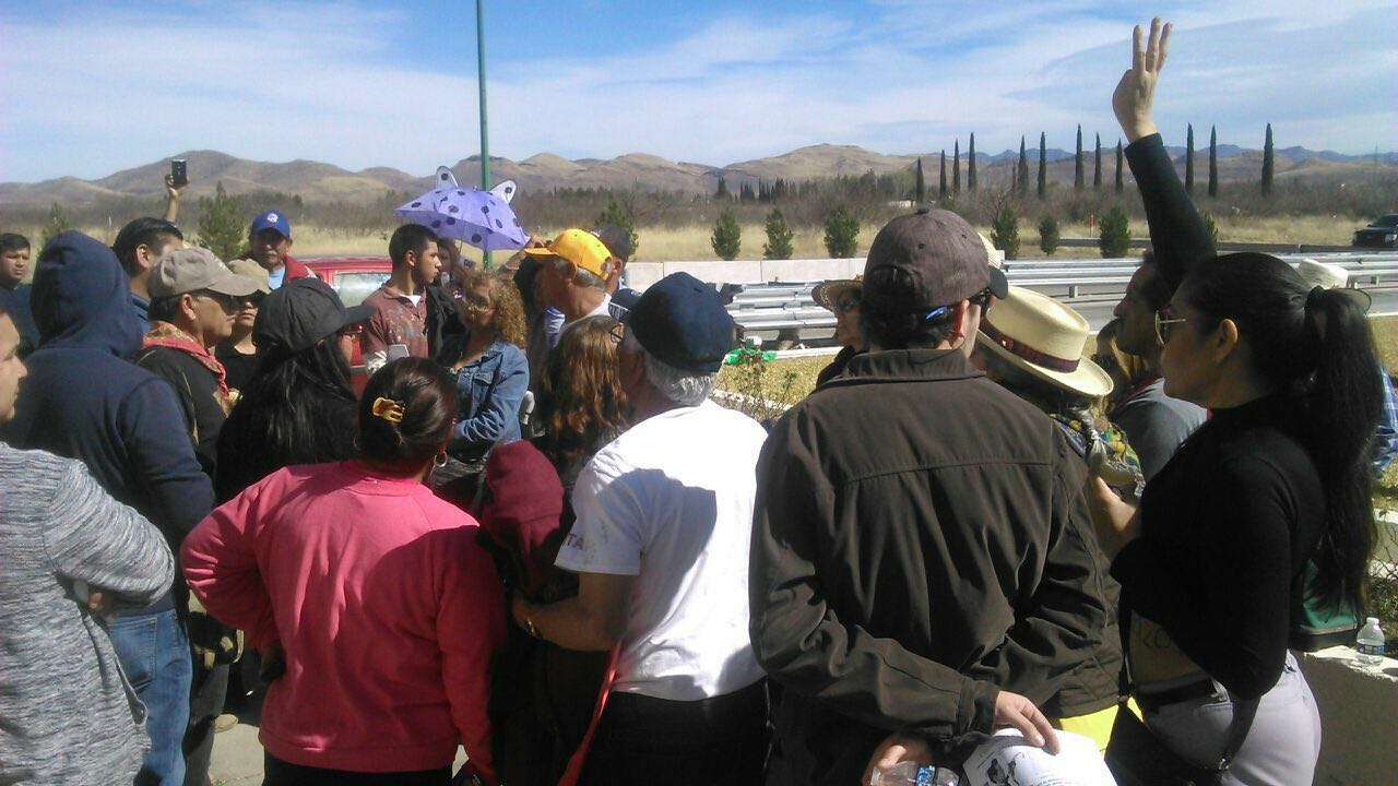 Desde las 9:30 de la mañana, los manifestantes se conglomeraron en la Deportiva Pistolas Meneses y de ahí partieron rumbo a la caseta, ubicada a la altura del kilómetro 31 de la carretera Chihuahua-Juárez.