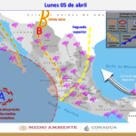 Para hoy, un canal de baja presión se extenderá sobre el norte y centro de México, mientras que un segundo canal de baja presión lo hará sobre el oriente y sureste del país, interaccionarán con inestabilidad en niveles altos de la atmósfera y con la entrada de humedad proveniente de ambos océanos, ocasionarán chubascos y lluvias puntuales fuertes acompañadas de descargas eléctricas, probables granizadas y vientos fuertes en dichas regiones, incluido el Valle de México.