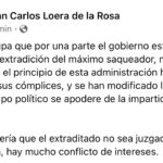 “Me preocupa que por una parte el gobierno estatal celebra la extradición del máximo saqueador, mientras que desde el principio de esta administración han sido liberados sus cómplices, y se han modificado leyes para que su grupo político se apodere de la impartición de justicia”, publicó Loera de la Rosa.