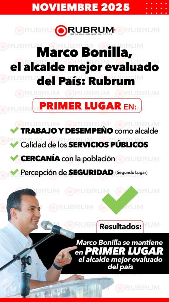 De acuerdo con la evaluación del mes de noviembre de la encuesta nacional RUBRUM, el alcalde de la ciudad de Chihuahua, Marco Bonilla, encabeza los primeros lugares de aprobación ciudadana en las categorías de “Trabajo y desempeño”, “Servicios públicos” y “Cercanía”.
