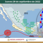 Por su parte, una zona de baja presión con potencial para desarrollo ciclónico o posible ciclón tropical, se ubicará el suroeste de las costas de Jalisco y reforzará la probabilidad de lluvias en el occidente de la República Mexicana.