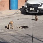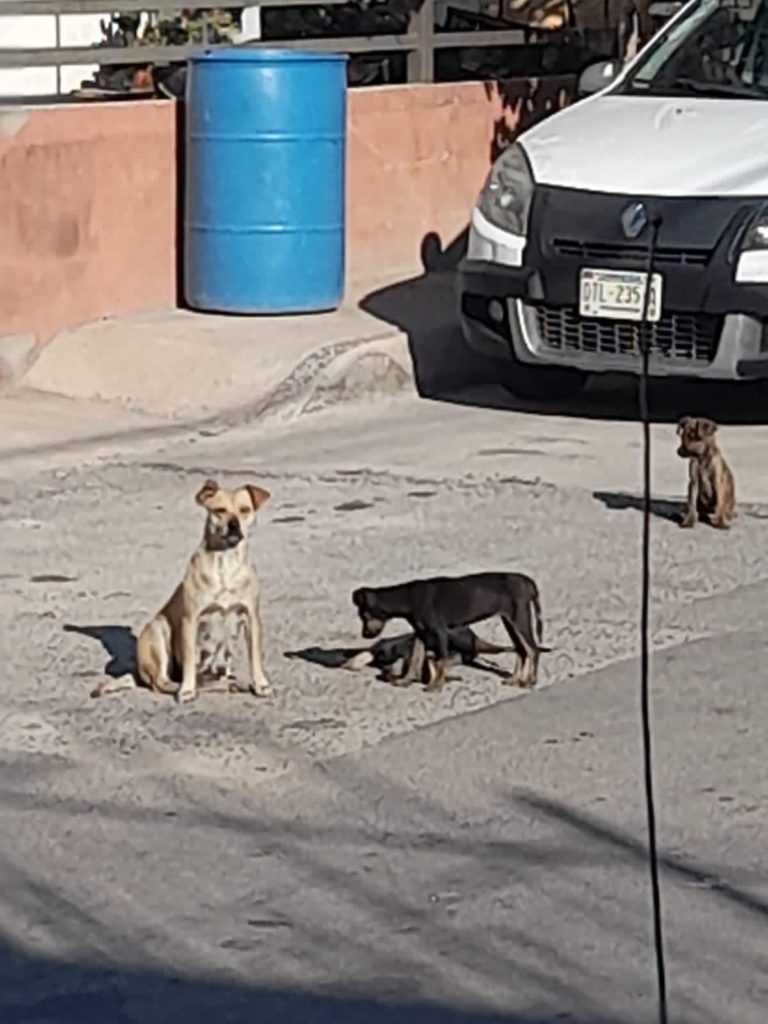 Una perrita y sus cachorros fueron captados la mañana de este miércoles en calles de la colonia Tarahumara, en la ciudad de Chihuahua, mientras no se separaban del cuerpo sin vida de uno de los cachorritos.