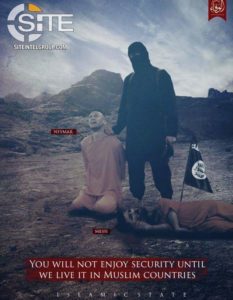 Según ha informado este sábado el portal de la organización SITE Intelligence Group, dedicado a la monitorización de la actividad yihadista en la Red, el anuncio muestra a Messi muerto, quien yace en el suelo junto a Neymar “esperando su ejecución”. La imagen está acompañada con la frase: “No disfrutarán de la seguridad hasta que nosotros la vivamos en los países musulmanes”.