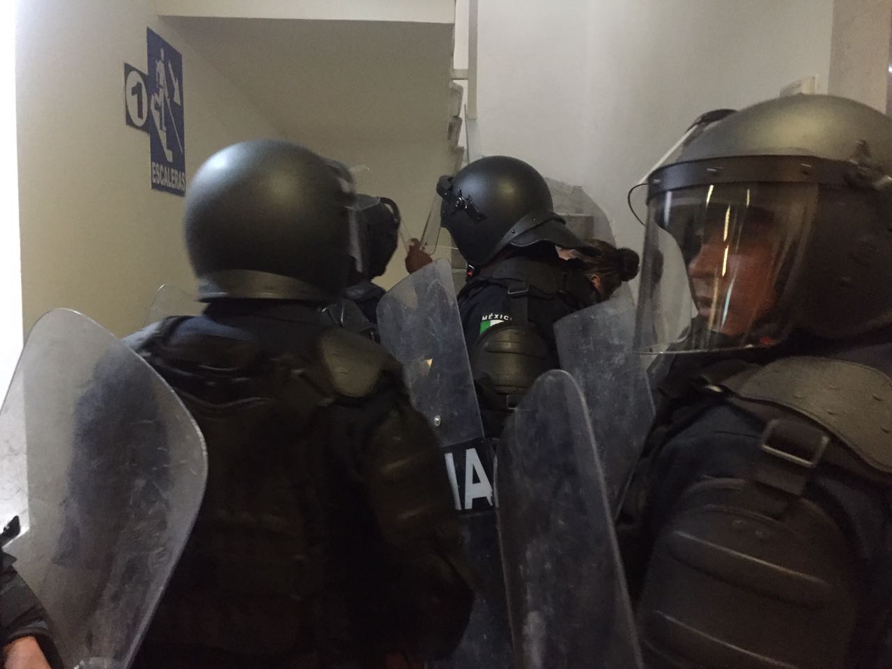 Los antimotines, conformados por policías estatales y federales, ingresaron al pleno de Congreso violando la ley orgánica que señala que es violatorio permitir la entrada a la fuerza pública a menos que se amerite y en este caso se presentaron los elementos tras las manifestaciones ciudadanas contra el presupuesto que no representaba la austeridad prometida por el gobierno actual.