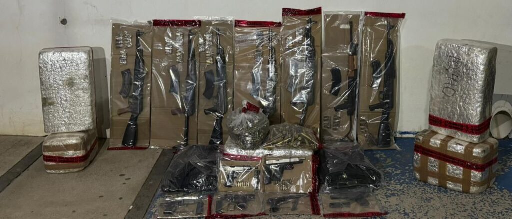 La intervención culminó con la detención de 9 personas, así como el aseguramiento de 13 armas de fuego, 40 cargadores, más de 1,700 cartuchos útiles, seis paquetes con droga y tres vehículos con alteraciones en número de serie.