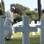 El Papa visitó el cementerio y antes de celebrar la misa por los caídos en todas las guerras se acercó a algunas tumbas, entre ellas la de un joven judío, para depositar varias rosas blancas.
