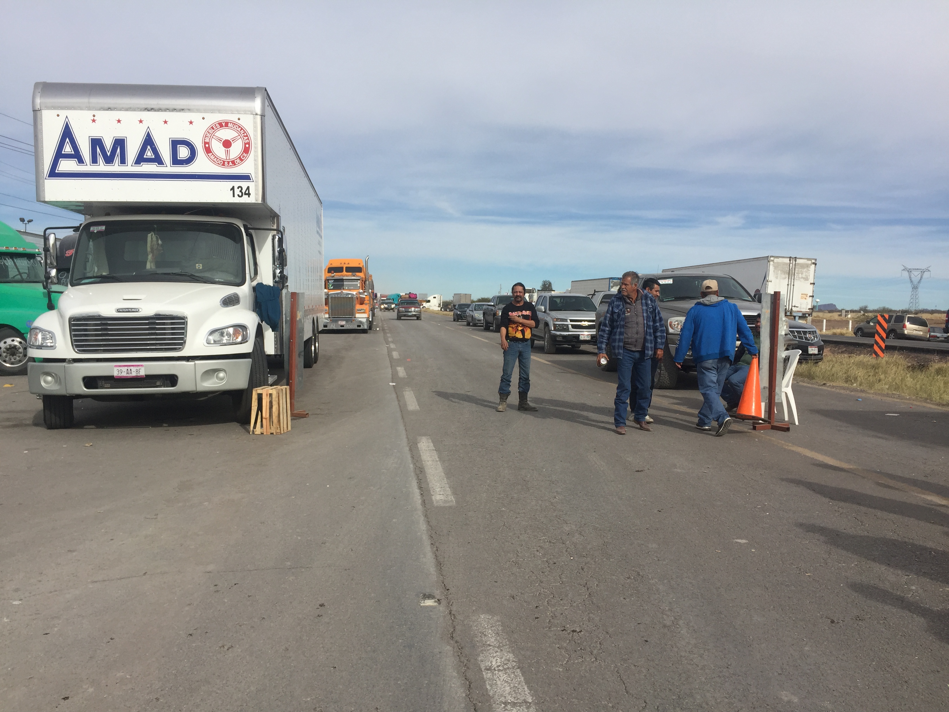 Transportistas que mantienen bloqueo comercial en la salida a Delicias reiteraron que mantendrán el bloqueo comercial y no responderán a las amenazas lanzadas por el gobierno estatal de desalojo tras la solicitud del empresariado a liberar las carreteras por afectaciones directas a sus bolsillos.