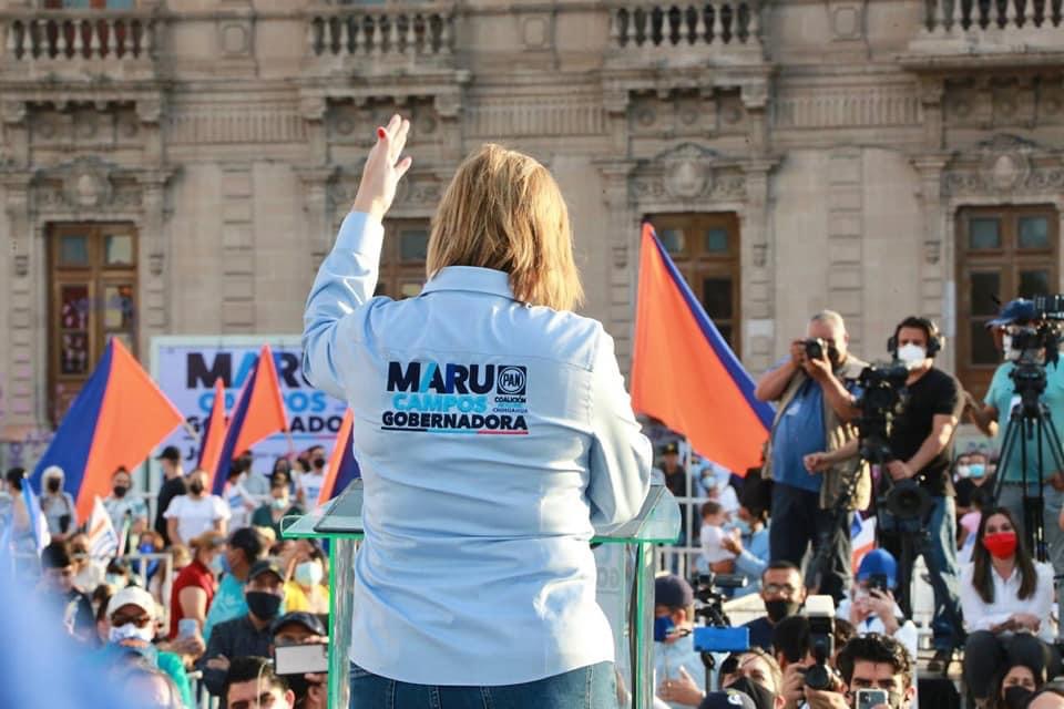 Durante su arranque de campaña en Chihuahua capital, la candidata del PAN-PRD a la gubernatura, Maru Campos Galván, ofreció un gobierno de resultados y que defienda los recursos del estado.