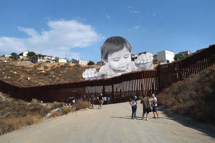 El artista francés dijo haberlo retratado para crear una imagen gigantesca de un niño que hiciera ver ridículo ese muro fronterizo.