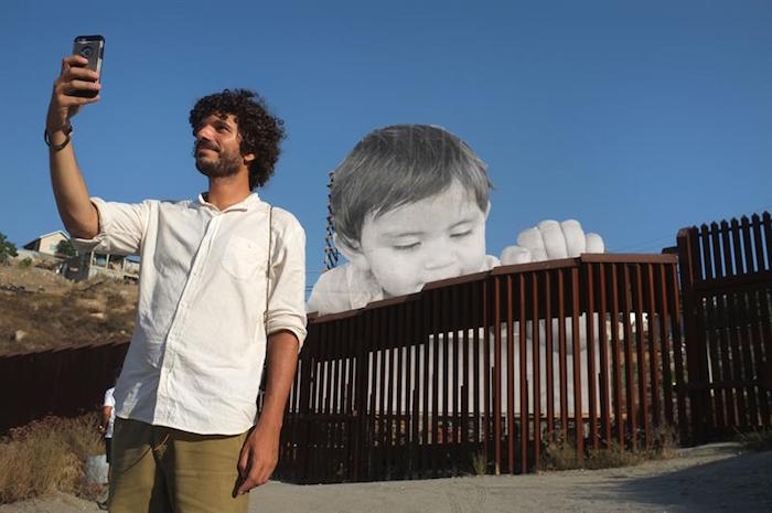 En el lugar se encontraba el fotógrafo francés, reconocido por llenar espacios con fotografías en gran formato en lugares como edificios. También estuvo presente el niño Francisco, de un año, en el terreno donde se levantó la estructura con su rostro, en el límite de la barda fronteriza.