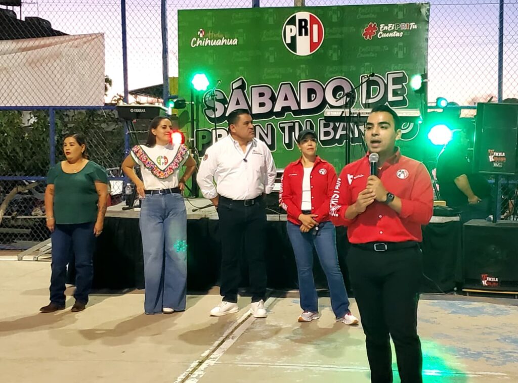 Chihuahua.- La dirigencia del Comité Municipal del PRI y sus sectores, celebraron esta tarde el primer “Sábado de PRI en tu Barrio”, convertido en una mega fiesta con vecinos de la colonia Punta Oriente y alrededores; ahí se ofrecieron servicios básicos como asesoría jurídica, gestorías, revisiones bucales, consultas médicas, cortes de cabello y más.