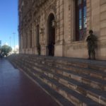 La reunión de seguridad se realizó en el salón Sacramento de Palacio de Gobierno, donde estuvieron involucrados mandos de corporaciones, por tal razón fue blindado el edificio por miembros del Ejército Mexicano.
