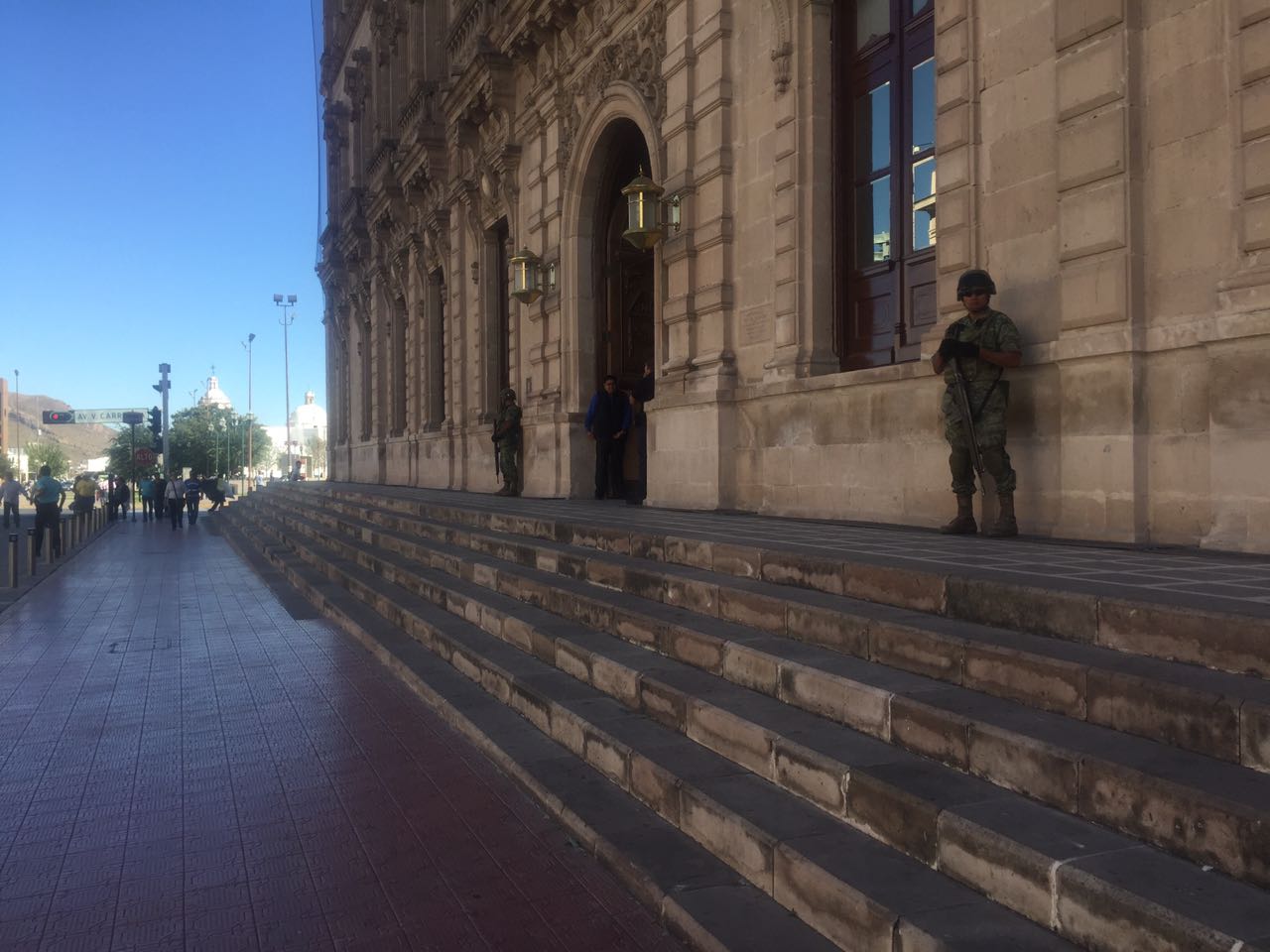 La reunión de seguridad se realizó en el salón Sacramento de Palacio de Gobierno, donde estuvieron involucrados mandos de corporaciones, por tal razón fue blindado el edificio por miembros del Ejército Mexicano.