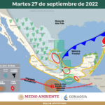 El frente frío Núm. 1 recorrerá el noreste y oriente de México, y provocará lluvias puntuales intensas en San Luis Potosí, Hidalgo, Puebla y Veracruz, así como lluvias muy fuertes en Tamaulipas y Querétaro. La masa de aire frío asociada al frente en combinación con la circulación del huracán “Ian”, el cual se desplazará sobre el oriente del Golfo de México, generarán evento de “Norte” con rachas de 50 a 70 km/h en costas de Tamaulipas, Veracruz e Istmo y Golfo de Tehuantepec, también, se prevé viento de componente norte con rachas de 60 a 80 km/h con olas de 2 a 3 metros de altura en el litoral de Yucatán y Quintana Roo.