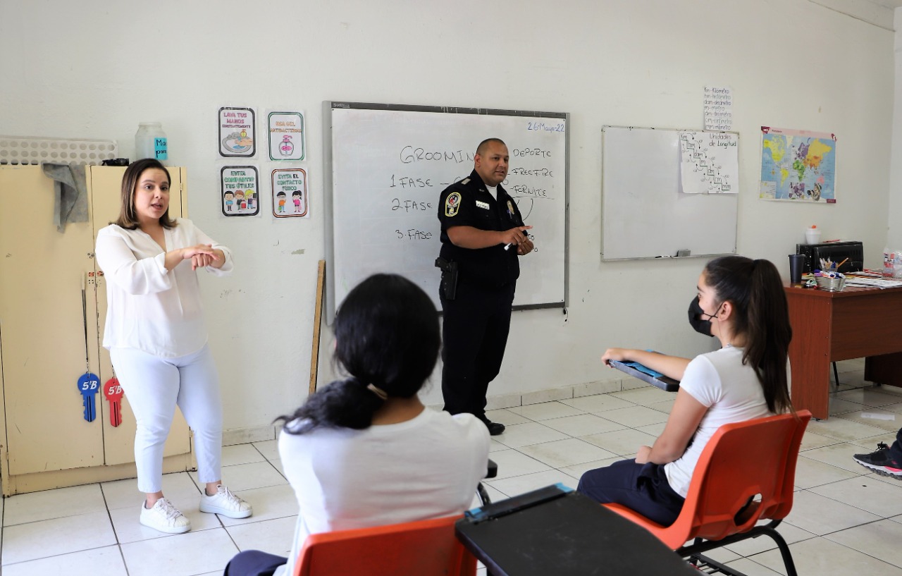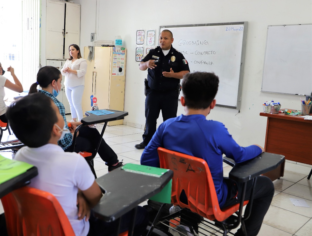 Alumnos de sexto grado de la escuela primaria Adolfo López Mateos, ubicada en la colonia Santa Rosa, recibieron una plática preventiva contra el grooming, que se da al usar sin la vigilancia adecuada de padres o adultos algunas redes sociales a través de las cuales personas con perfiles falsos buscan conversar con niñas, niños y adolescentes para cometer delitos de tipo sexual principalmente.