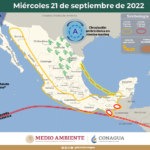 Un canal de baja presión frente a las costas de Tamaulipas y Veracruz, en combinación con la vaguada monzónica que se extenderá muy próxima a las costas del Pacífico Sur Mexicano, aunado al ingreso de humedad del Océano Pacífico, Golfo de México y Mar Caribe, generarán lluvias puntuales intensas en Chiapas; puntuales muy fuertes en Veracruz, Tabasco, Guerrero y Oaxaca; lluvias puntuales fuertes en el Estado de México y Campeche; chubascos en Tamaulipas, San Luis Potosí, Hidalgo, Morelos, Tlaxcala, Puebla, Ciudad de México, Yucatán y Quintana Roo, así como lluvias aisladas en Guanajuato y Querétaro.