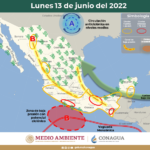 Por otro lado, se pronostican vientos con rachas de 60 a 70 km/h y tolvaneras sobre Baja California y estados fronterizos del norte y noreste de México.