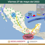 Este día se prevé que la zona de baja presión con potencial ciclónico de origen al primer ciclón tropical de la temporada 2022 en el Pacífico Nororiental al sur de las costas de Oaxaca, este sistema generará lluvias fuertes a muy fuertes que podrían generar deslaves e inundaciones en el sur y sureste mexicano, incluida la Península de Yucatán, con lluvias puntuales intensas en Oaxaca y Chiapas.