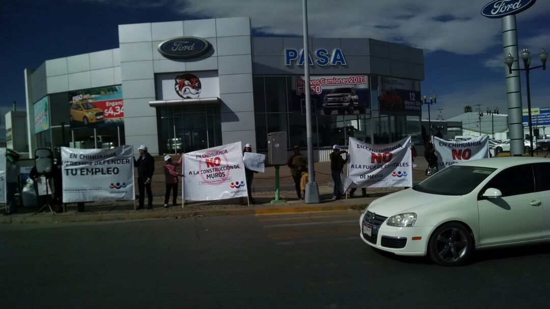 La protesta es a nivel nacional y en el estado de Chihuahua se replicó en Parral y en Ciudad Juárez, a fin de solicitarle a Ford que no retire sus capitales y que proteja el empleo de los chihuahuenses.