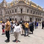 Fue en la plaza de Armas donde se desarrollaron los grupos de evacuaciòn por piso en donde por lo menos se dio el siulacro en 10 minutos.
