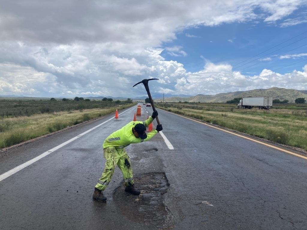 La Secretaría de Infraestructura, Comunicaciones y Transportes (SICT) en Chihuahua informa que se realiza un operativo de bacheo intensivo y permanente en la carretera Chihuahua-Juárez, con el fin de mejorar la superficie de rodamiento que fue afectada por las recientes lluvias.