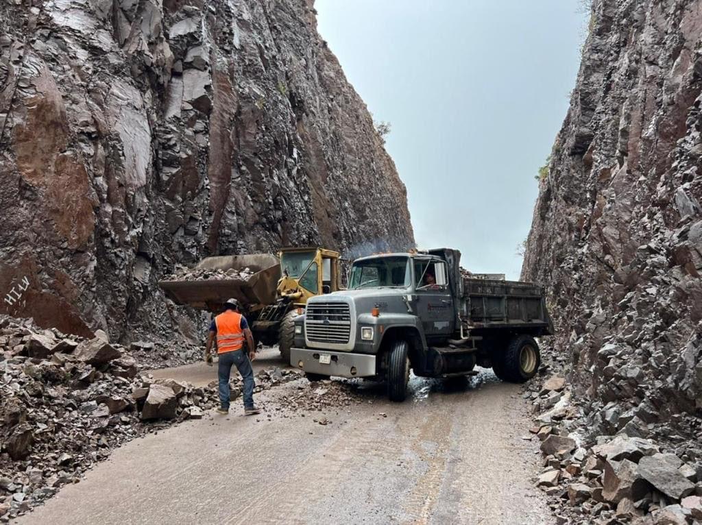 Al mismo tiempo, en la carretera Chihuahua-Ojinaga en el km 193+700 se registró un derrumbe, el cual ya está siendo atendido.